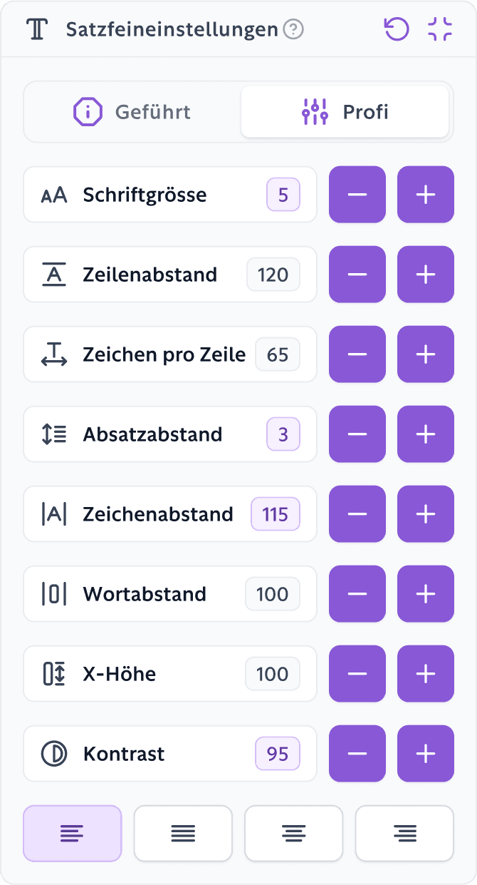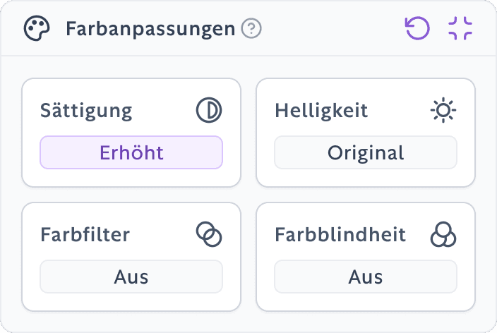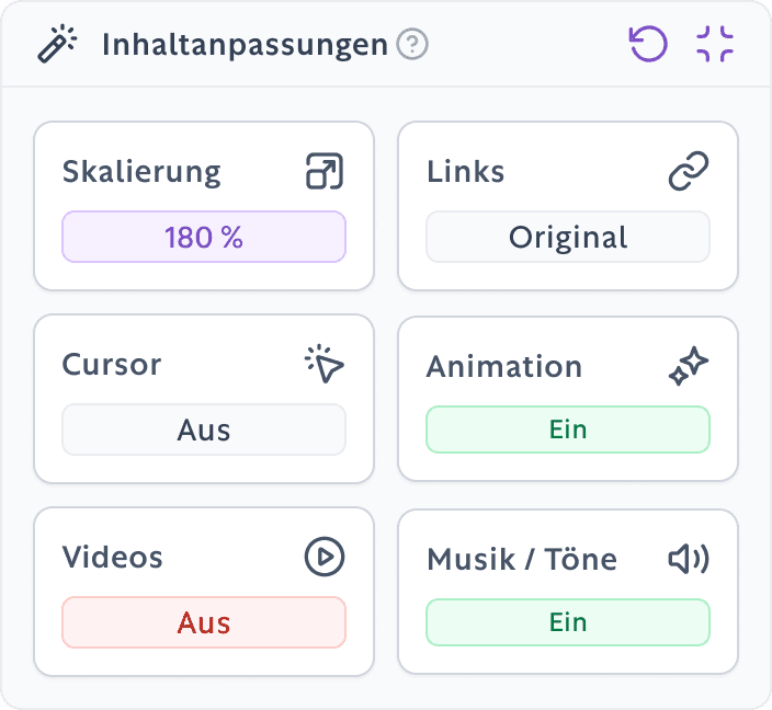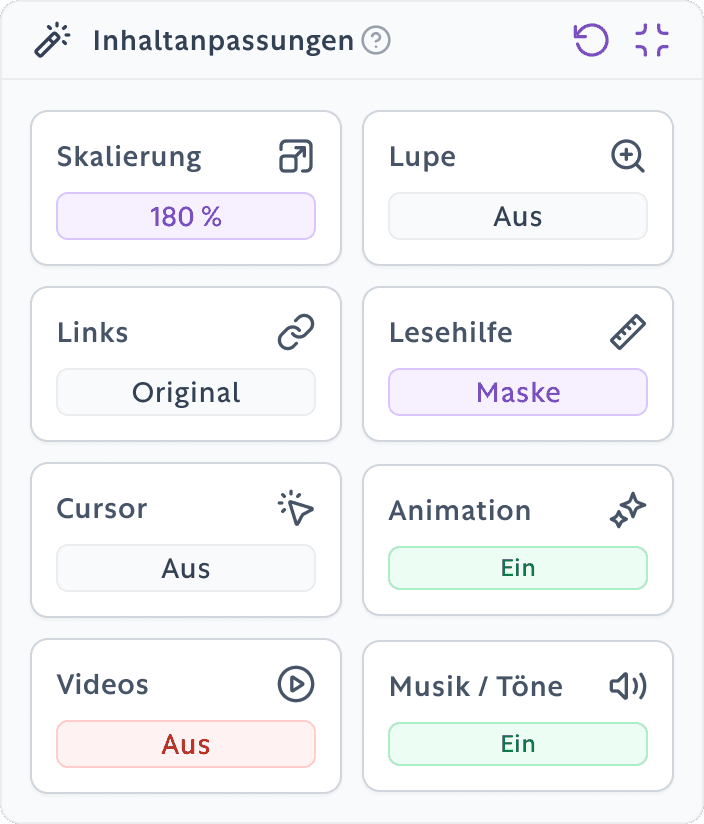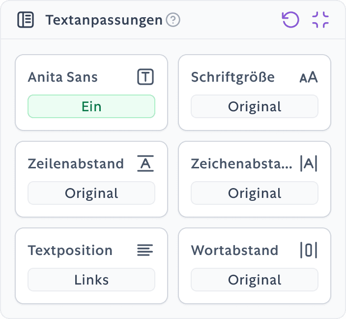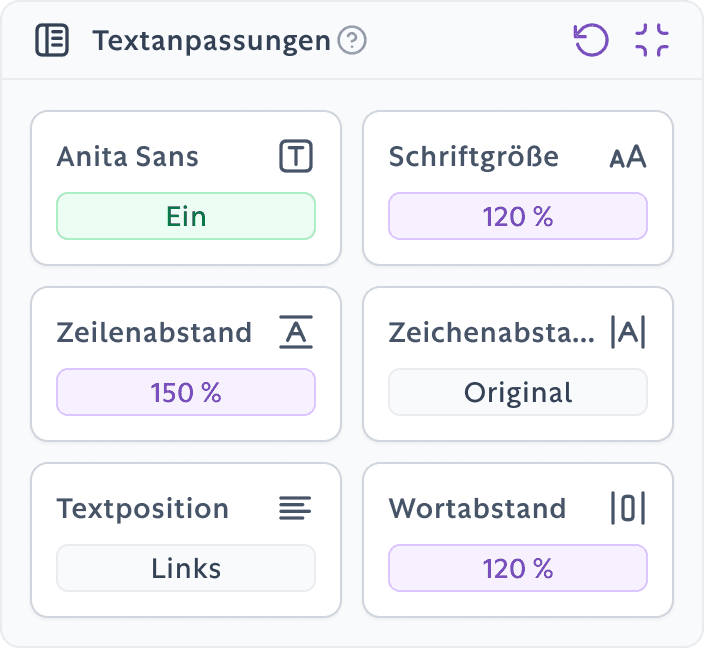 Unsere Anwendung für barrierefreies Surfen bietet dir die wichtigsten Instrumente, um das Erlebnis im Web so angenehm und zugänglich wie möglich zu gestalten.