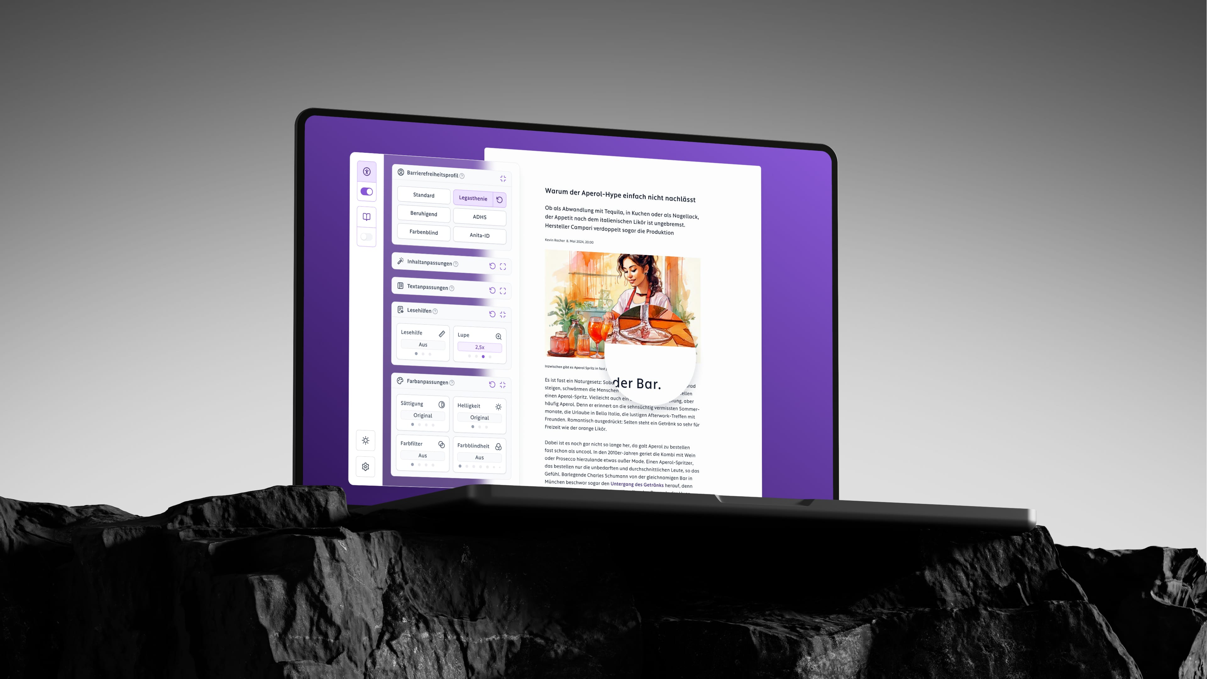 Klicke auf die verschiedenen Elemente meines Lesetools, um mehr über deren Funktionen und Features zu erfahren.